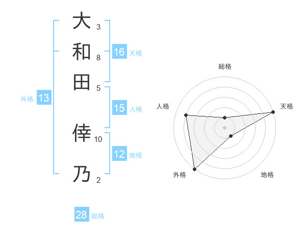大和田 倖乃さんを姓名の画数から五運を鑑定