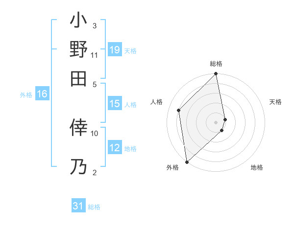 小野田 倖乃さんを姓名の画数から五運を鑑定