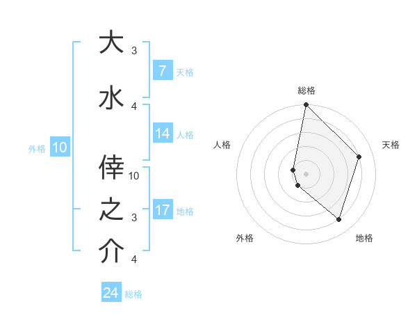 大水 倖之介さんの総格は24画の5点!