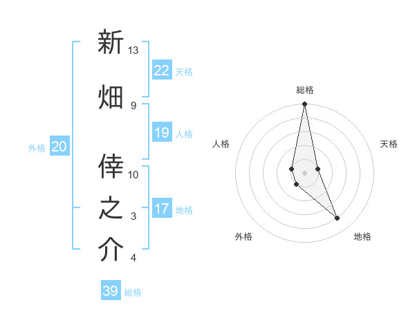 新畑 倖之介さんの総格は39画の5点!