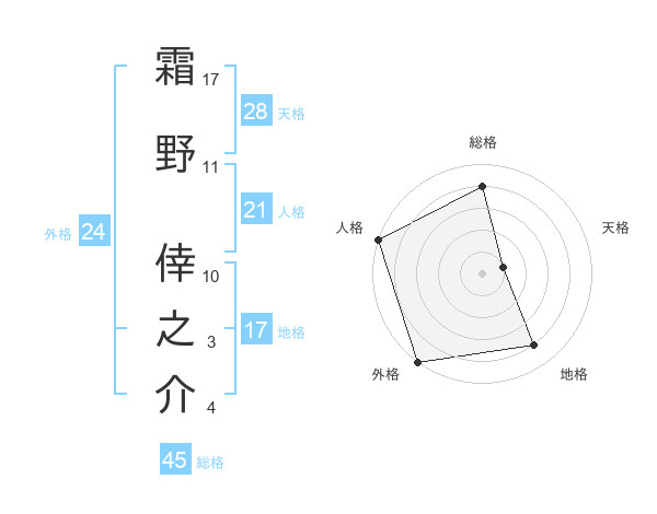 霜野 倖之介さんの外格は24画の5点!