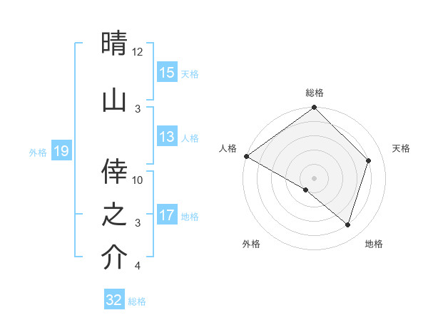 晴山 倖之介さんを姓名の画数から五運を鑑定