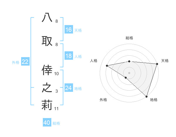八取 倖之莉さんの天格は16画の5点!