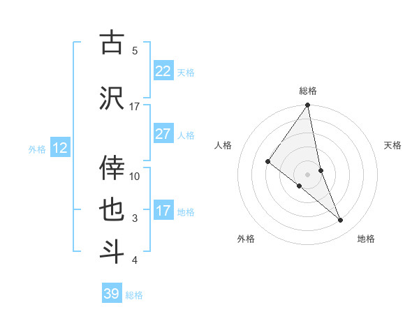 古沢 倖也斗さんの総格は39画の5点!