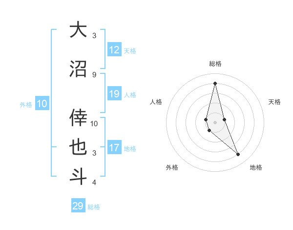 大沼 倖也斗さんを姓名の画数から五運を鑑定