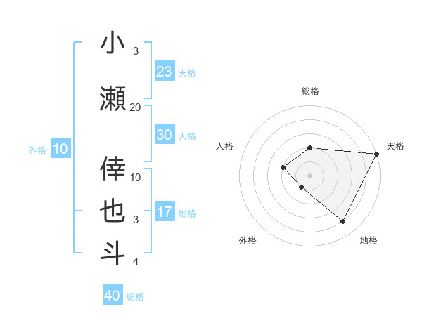 小瀬 倖也斗さんを姓名の画数から五運を鑑定