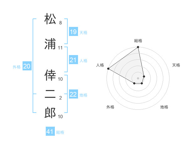 松浦 倖二郎さんを姓名の画数から五運を鑑定