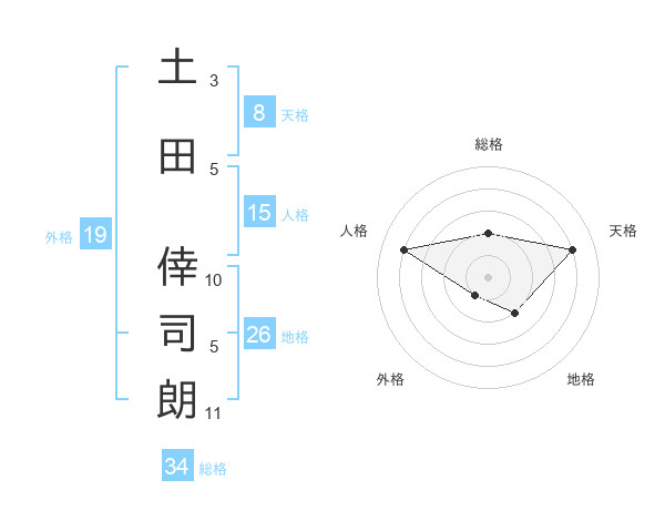 土田 倖司朗さんを姓名の画数から五運を鑑定