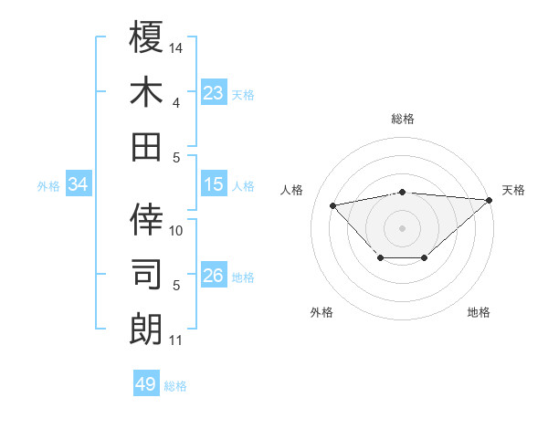榎木田 倖司朗さんの天格は23画の5点
