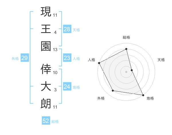 現王園 倖大朗さんを姓名の画数から五運を鑑定