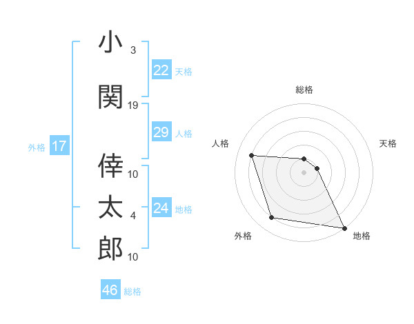 小関 倖太郎さんを姓名の画数から五運を鑑定