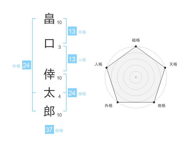 畠口 倖太郎さんの総格は37画の5点!