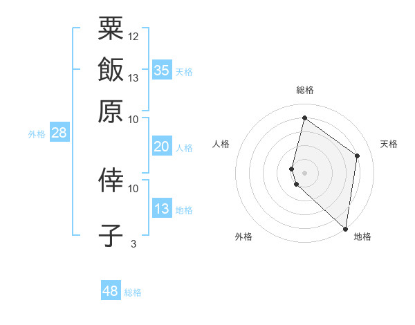 粟飯原 倖子さんの天格は35画の4点!
