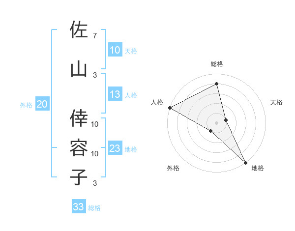 佐山 倖容子さんを姓名の画数から五運を鑑定