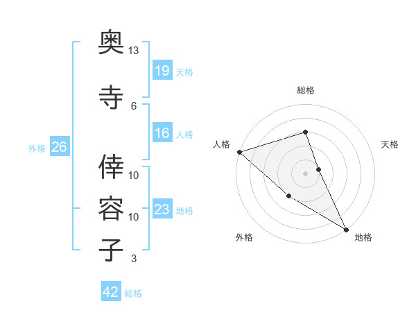 奥寺 倖容子さんの天格は19画の1点!