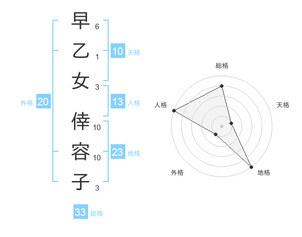 早乙女 倖容子さんの総格は33画の4点!