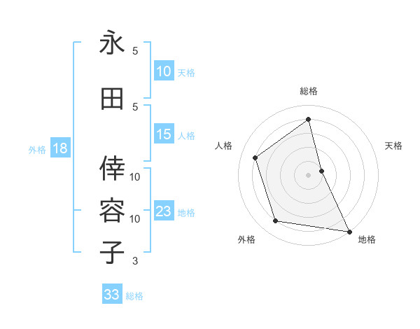 永田 倖容子さんを姓名の画数から五運を鑑定