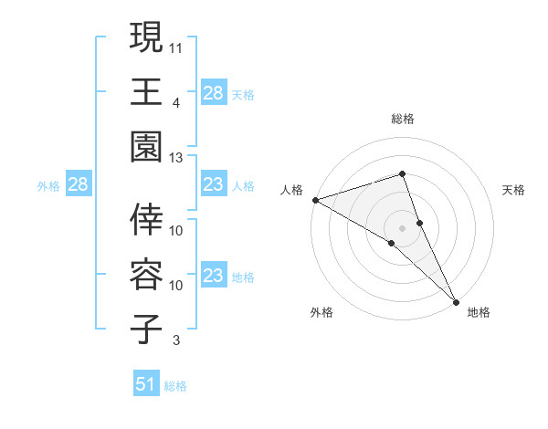 現王園 倖容子さんを姓名の画数から五運を鑑定