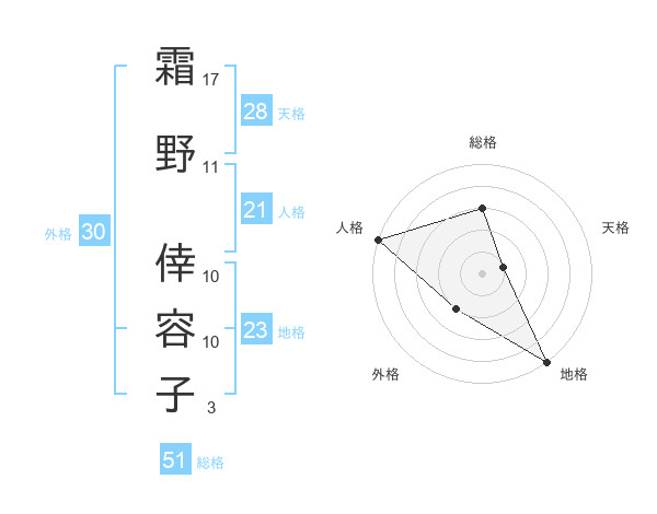 霜野 倖容子さんを姓名の画数から五運を鑑定