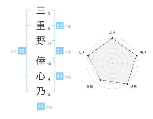 三重野 倖心乃さんを姓名の画数から五運を鑑定