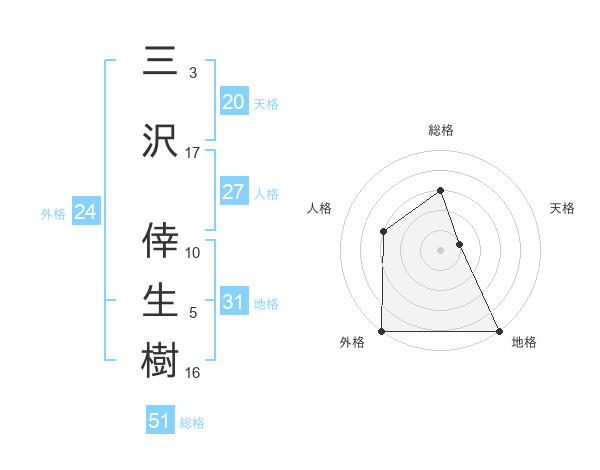 三沢 倖生樹さんを姓名の画数から五運を鑑定