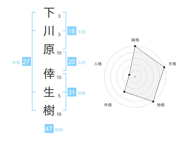 下川原 倖生樹さんを姓名の画数から五運を鑑定