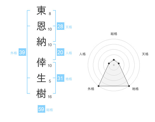 東恩納 倖生樹さんを姓名の画数から五運を鑑定