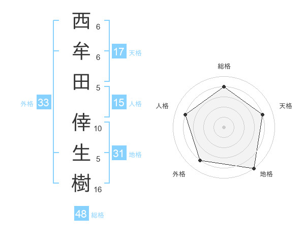 西牟田 倖生樹さんを姓名の画数から五運を鑑定