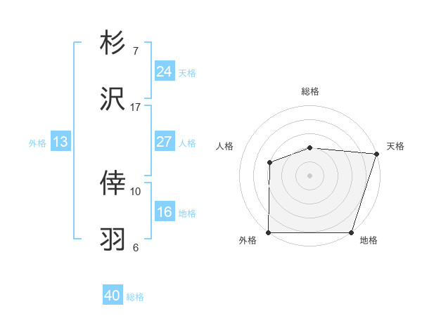 杉沢 倖羽さんを姓名の画数から五運を鑑定