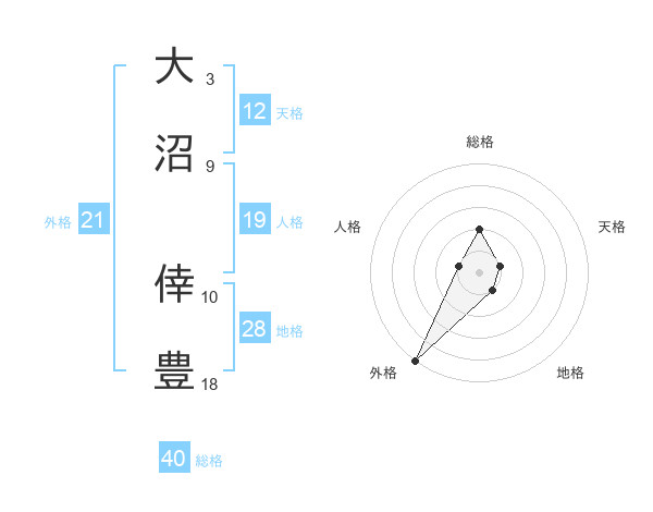 大沼 倖豊さんを姓名の画数から五運を鑑定