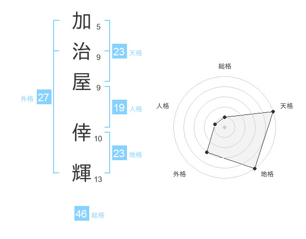 加治屋 倖輝さんの天格は23画の5点