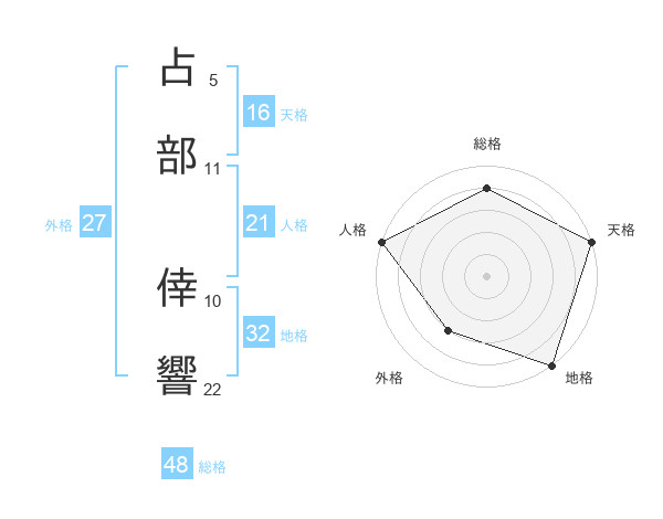 占部 倖響さんの天格は16画の5点!