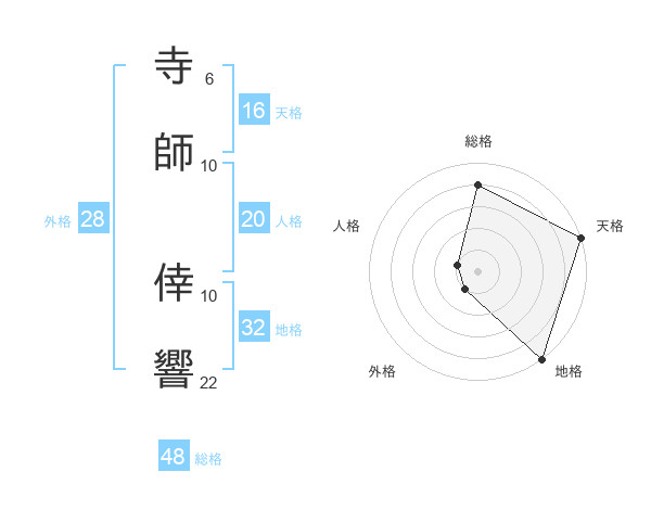 寺師 倖響さんの総格は48画の4点!