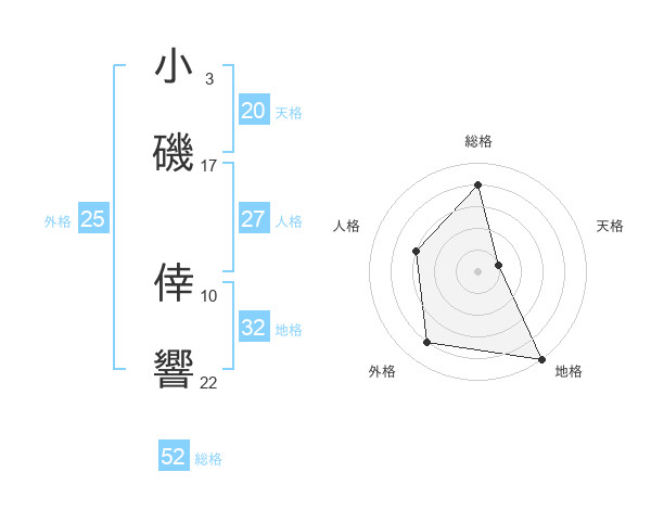 小磯 倖響さんの総格は52画の4点!
