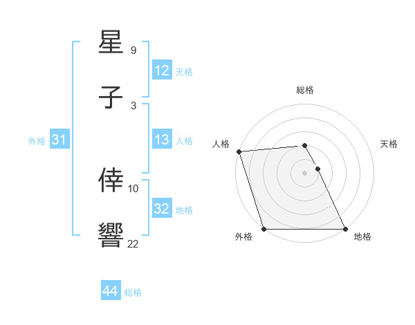星子 倖響さんの総格は44画の2点!