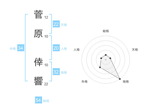 菅原 倖響さんの総格は54画の1点!