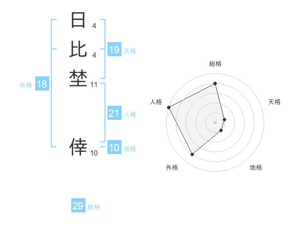 日比埜 倖さんの総格は29画の4点!