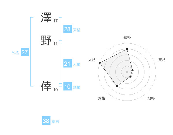 澤野 倖さんの総格は38画の4点!