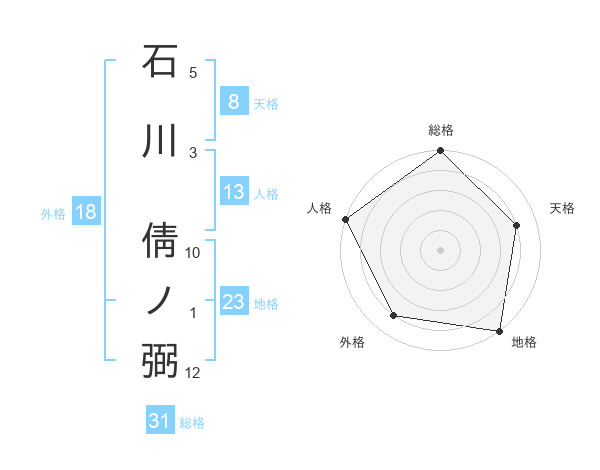 石川 倩ノ弼さんを姓名の画数から五運を鑑定