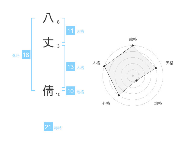 八丈 倩さんの総格は21画の5点!