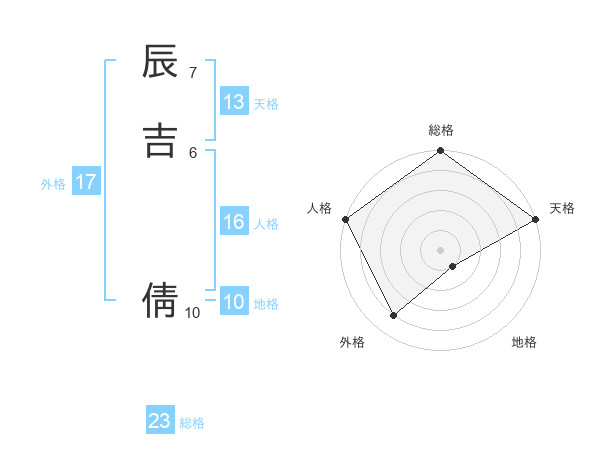辰吉 倩さんの総格は23画の5点!
