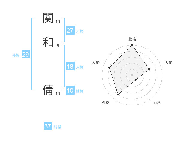 関和 倩さんの総格は37画の5点!