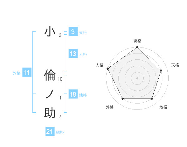 小 倫ノ助さんの総格は21画の5点!