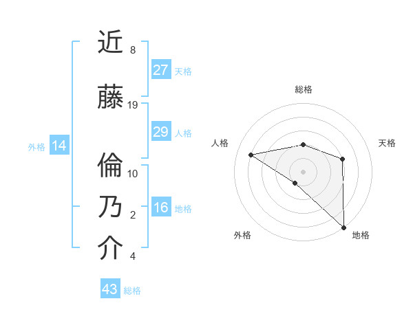 近藤 倫乃介さんを姓名の画数から五運を鑑定