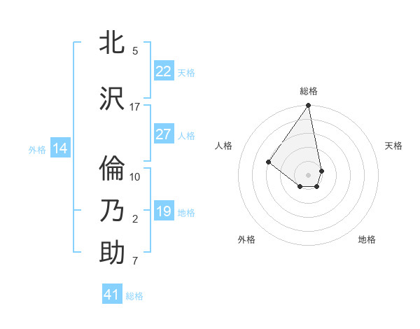 北沢 倫乃助さんの総格は41画の5点!