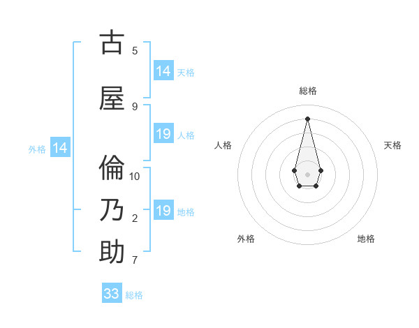 古屋 倫乃助さんを姓名の画数から五運を鑑定