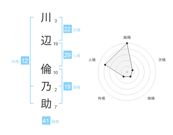 川辺 倫乃助さんの総格は41画の5点!