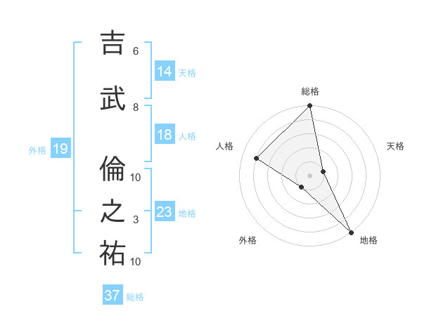 吉武 倫之祐さんの総格は37画の5点!