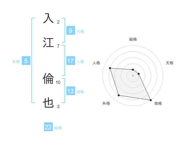 入江 倫也さんの総格は22画の1点!