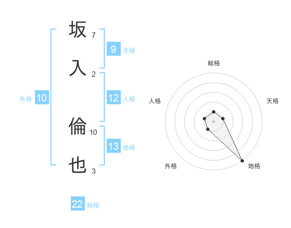 坂入 倫也さんの地格は13画の5点!